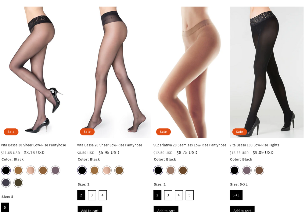 After choosing a Shopify theme that was very close to the PrestaShop theme the old site had, there was a crucial feature Alisa wanted for her customers: to clearly see the stockings patterns and colors when choosing a variant. We edited the template to make sure this was possible and helped her deliver the experience she wanted.